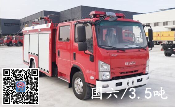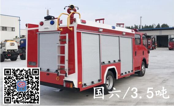 國六標準3.5噸泡沫消防車采用慶鈴QL1110ANKAY底盤改裝而成。產品型號為:JDF5100GXFPM30/Q6型泡沫消防車、JDF5100GXFSG30/Q6型水罐消防車,整車由消防員乘員室和車身兩大部分組成,乘員室為雙排,可乘坐3+3人,該車為內藏罐結構,車身前部為器材箱,中部為水罐,后部為泵房。載液罐體為優質碳鋼,與底盤采用彈性連接,載水2600kg(PM30)/3380kg(SG30),泡沫液量780kg(PM30),裝備了上海茸申消防設備有限公司生產CB10/30型低壓消防泵,額定流量30L/S,車頂安裝成都威斯特消防機械有限公司生產的PL24(PM30)或PS30W(SG30)型車用消防炮。該車最大的特點是載液量大、操控性好、維修簡便。可廣泛應用于公安消防隊、廠礦企業及社區、碼頭等場所,撲救大型油類火災或一般物質火災。工信部公告于327批下達,環保已經下達(北京環保已經下達,可上北京牌照),免征已經下達,可接受市場訂購,咨詢熱線:0722-3330466/13886862466。