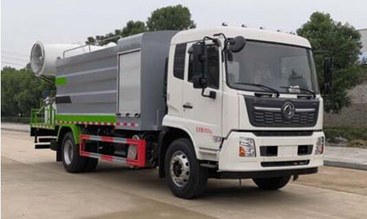 底盤配置:東風(fēng)天錦霧炮車/多功能抑塵車底盤配置:采用東風(fēng)天錦系列原裝二類底盤,東風(fēng)天錦駕駛室,4700mm軸距,搭載國六(國Ⅵ)康明斯210馬力柴油發(fā)動(dòng)機(jī),東風(fēng)6檔變速箱,9T后橋,10.00R20鋼絲胎/275真空輪胎,方向助力、斷氣剎、電動(dòng)玻璃、多功能方向盤、原裝空調(diào),ABS,GB7258新規(guī)。 上裝配置:上裝采用方形罐體(罐體容積11-12立方),搭載80米噴霧機(jī)組(選裝60-100米),前置50KW玉柴副發(fā)動(dòng)機(jī),罐體鋼板為4mm碳鋼Q235材質(zhì),罐內(nèi)隔板具有防波作用,以減輕汽車行駛時(shí)罐體液體沖擊,罐體及整車外形尺寸按照公告。帶大功率專用灑水泵,泵可自吸自排,整車前沖、后灑、側(cè)噴、帶65消防接口,后平臺(tái)選配60-100米風(fēng)送式霧炮機(jī)組;匹配先對(duì)功率柴油發(fā)電機(jī)組;遠(yuǎn)程遙控系統(tǒng)控制;霧炮自動(dòng)旋轉(zhuǎn)角度0-360°。后平臺(tái)帶綠化灑水炮,水炮揚(yáng)程≥25米,灑水炮可全方位旋轉(zhuǎn),可連續(xù)調(diào)成直沖狀、大雨、小雨、毛毛雨;前封頭帶水位計(jì),后平臺(tái)主管路帶1寸澆花接口,后爬梯。平臺(tái)后部帶小安全告知牌:“隨時(shí)停車,注意安全”,帶兩根水管及陰陽端。罐體顏色:上白/下藍(lán),銀灰/銀藍(lán),罐體兩側(cè)噴“多功能抑塵車”字樣,貼反光標(biāo)示。