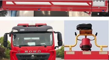 重汽24噸泡沫消防車采用重汽豪沃ZZ5447TXFV466MF1底盤改裝而成。整車由消防員乘員室和車身兩大部分組成,乘員室為原裝單排,可乘坐2人,該車為外露罐結構,中部為罐體,后部為泵房。載液罐體為優質碳鋼,內部噴涂環氧底漆及環氧瀝青漆,與底盤采用彈性連接,載水量21260kg,泡沫液量2990kg(PM240),裝備了上海茸申消防設備有限公司生產CB10/80-1RS型常壓消防泵,額定流量80L/S,車頂安裝成都威斯特消防機械有限公司生產的PL8/64型車用消防炮。該車最大的特點是載液量大、操控性好、維修簡便。可廣泛應用于公安消防隊、廠礦企業及社區、碼頭等場所,撲救大型油類火災和一般物質火災。