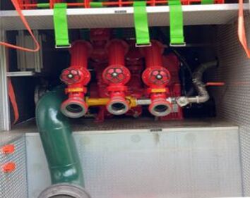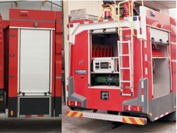泵房位于整車后部,兩邊與后邊設(shè)鋁合金卷簾門,內(nèi)有照明燈,泵室兩側(cè)可放置部分常用器材