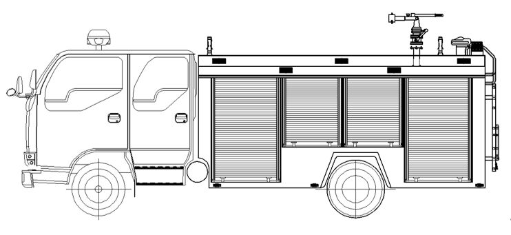 整車由消防員乘員室和車身兩大部分組成,車身布置采用整體框架式結(jié)構,內(nèi)藏水罐,兩邊為器材箱,后部為水泵房,罐體為平行長方體廂式容罐。 |