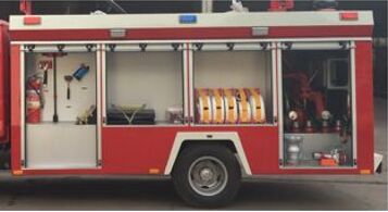 泵房位于整車后部,兩邊與后邊設鋁合金卷簾門,內(nèi)有照明燈,泵室兩側(cè)可放置部分常用器材
